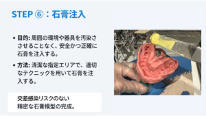 技⼯物を扱うスタッフ、設備の⼆次汚染、不潔な模型を使ってホワイトニングトレーやマウスピースを作製すると、切削器具や作業スペースも汚染されます。感染源が作業環境に広がると、他の患者やスタッフへの影響も避けられません。